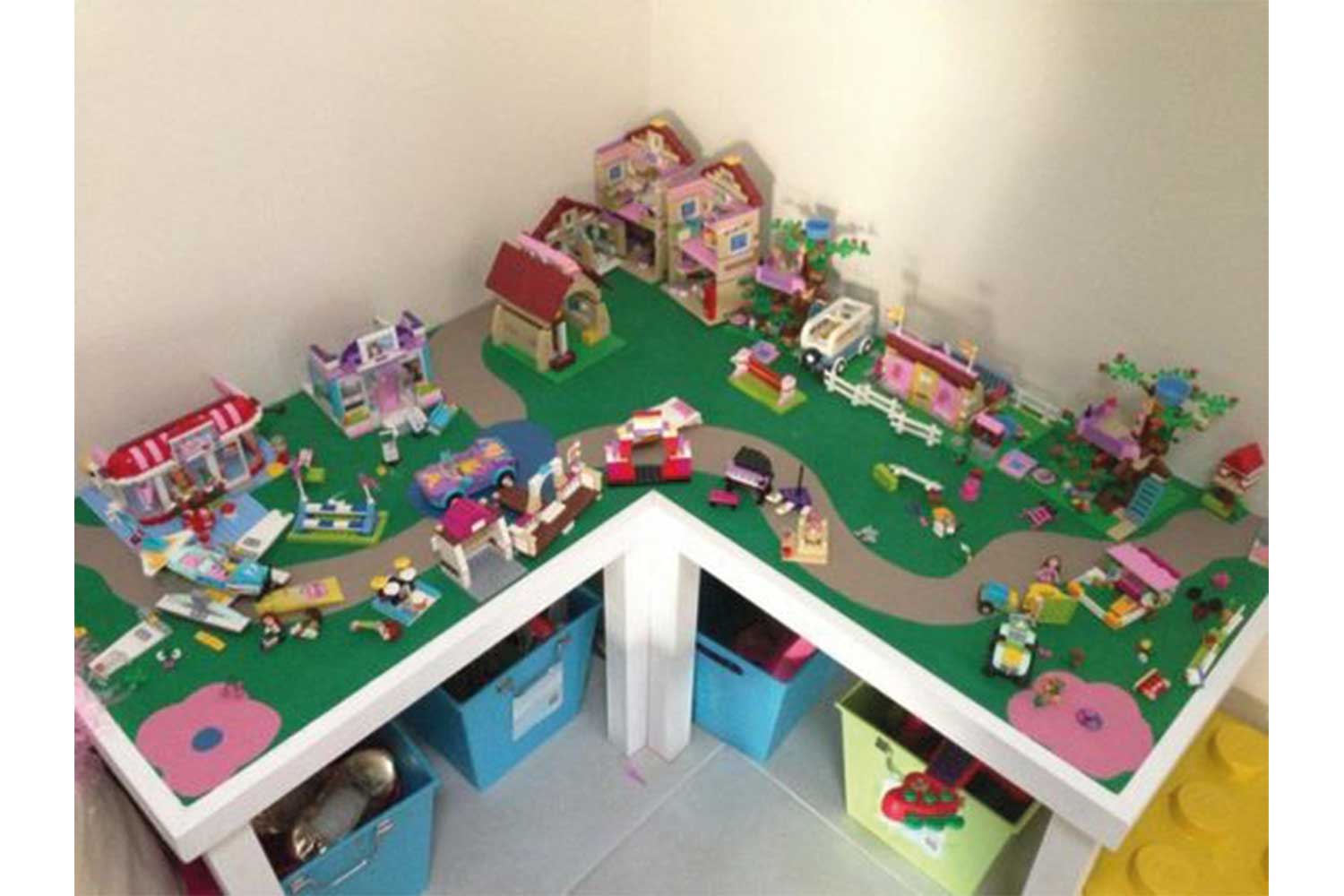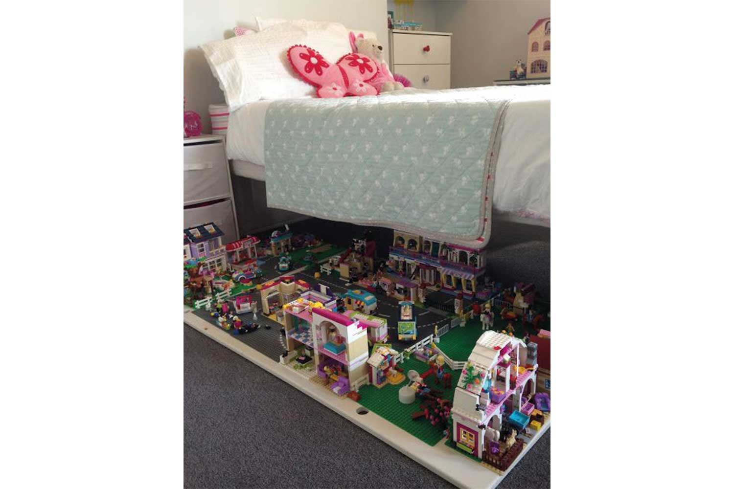 Top tip: Secure Lego base boards to top of cabinets for stability and instant building