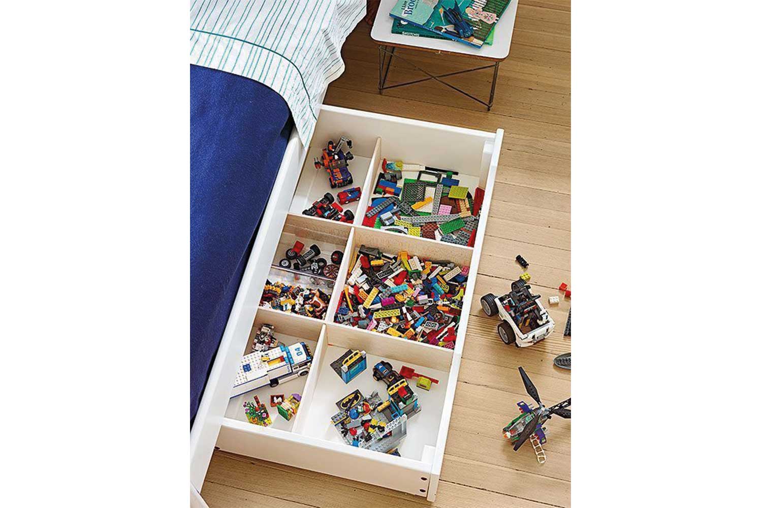 Top tip: For the serious Lego builder, install shelving above storage for display of creations