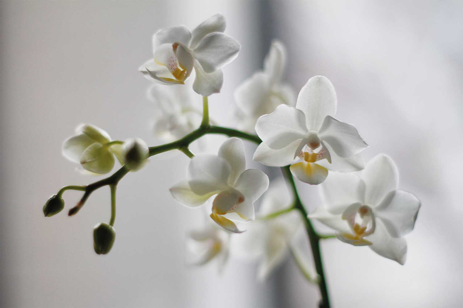 Like any flowering plant, an orchid needs to regroup and recharge once it’s produced a flourish of blooms, so any spent flowers should be removed by a snipping the stem just below where the last flower grew from. Take care to keep the little bump below as this ‘node’ will provide new growth.