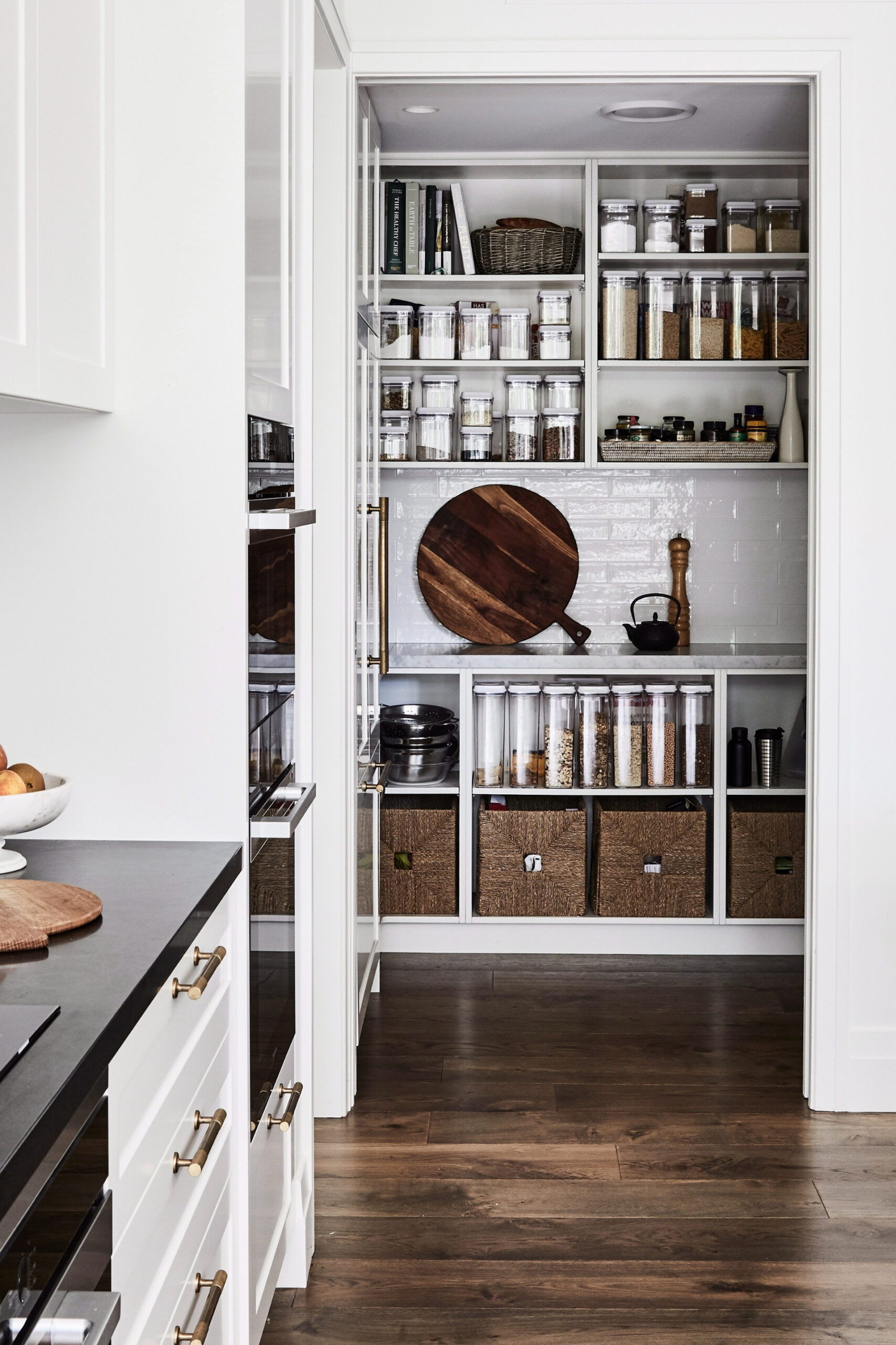 1024041 White kitchen with butlers pantry featuring open shelving The first step is to take stock of everything in your kitchen cupboards. White and gold kitchen with oak floating shelves holding spices Solid-oak shelves are a handsome feature in this pantry. Japandi style kitchen with open shelving This kitchen belongs to a chef and restaurant owner and features open shelving for easy access to ingredients. homebeautiful-1024041