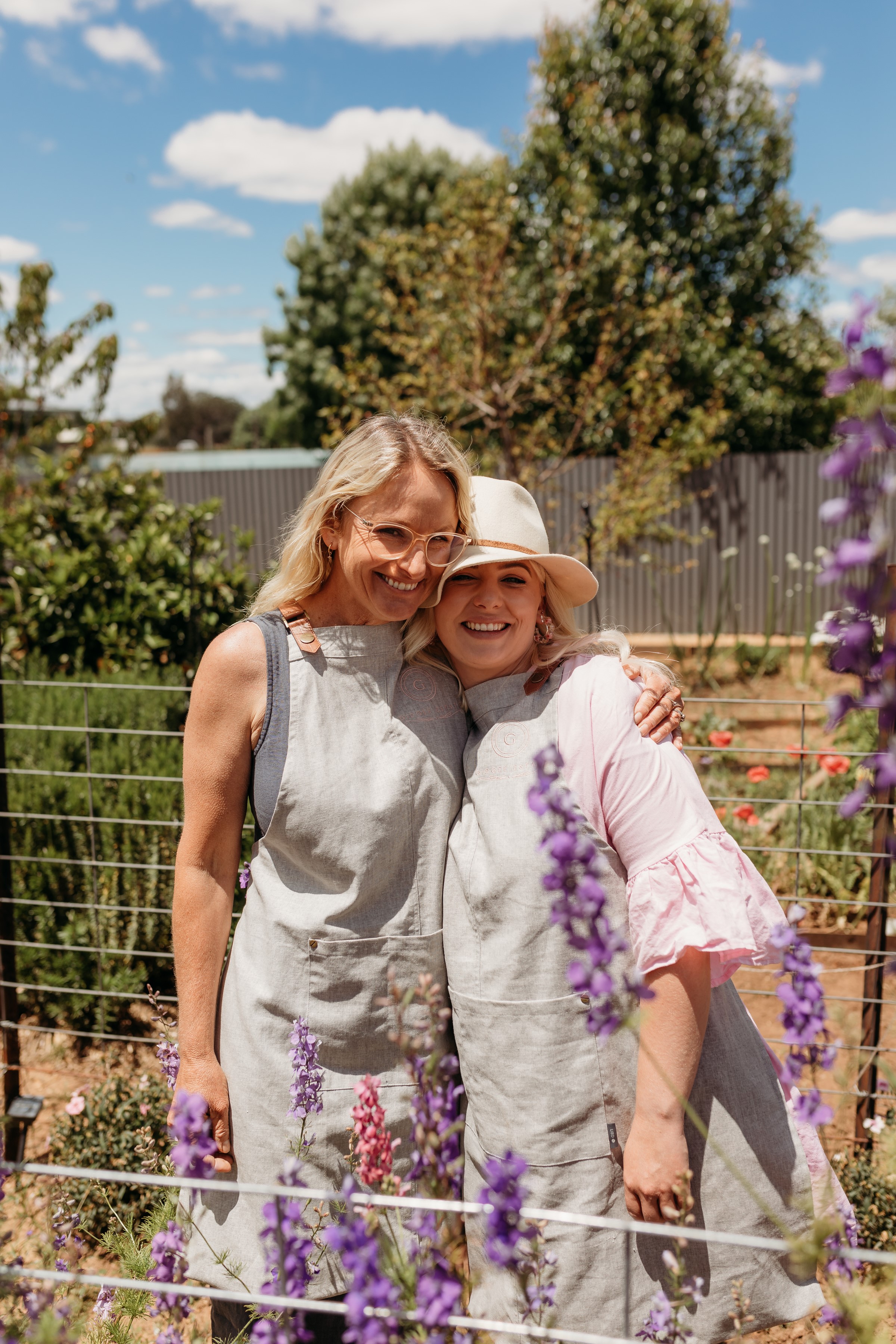 Kathryn and Mikayla in the flower farm at Gidgee Estate. (Photographer: Georgia Rose Photography)