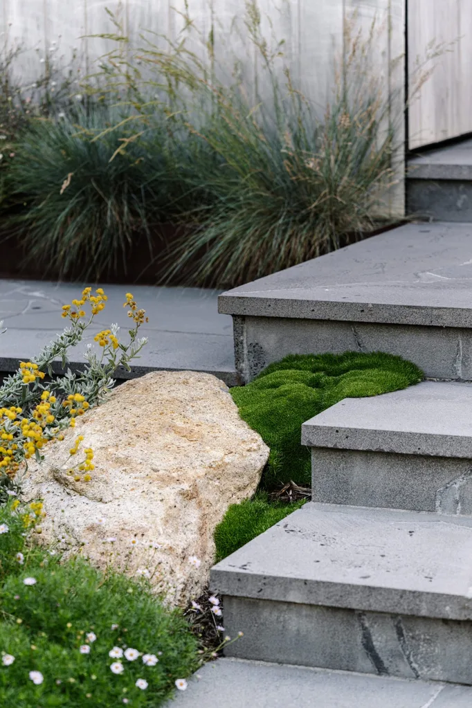 and granite to create areas for sitting and exploring. The result is reminiscent of a wild and winding bushwalking track.